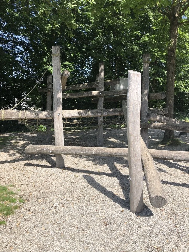 this naturalistic play space was well worn and loved by kids of all ages (trust me!). notice the loose gravel flooring too - completely safe to fall onto from 3m high! German standards; zehr gut.