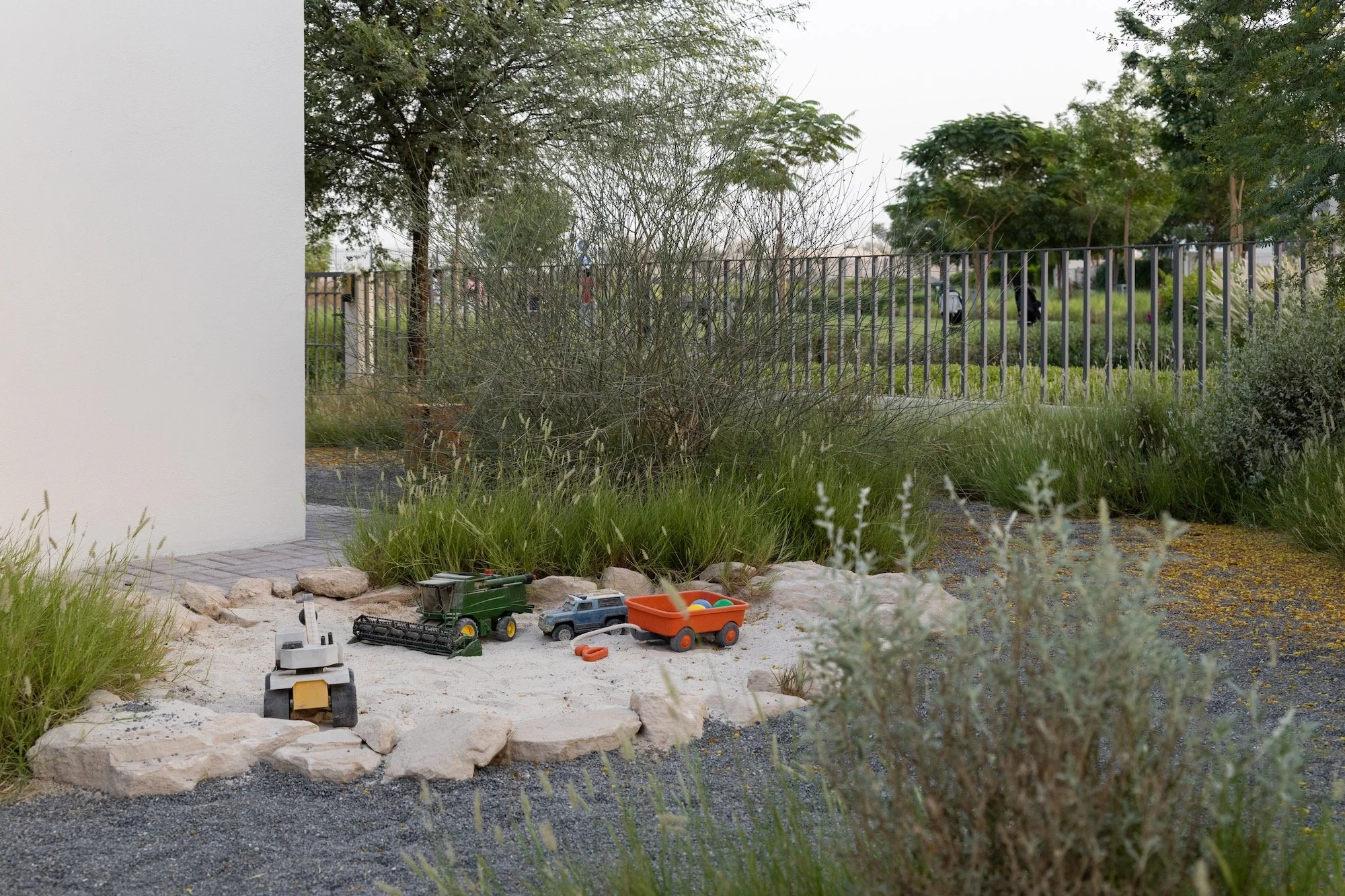 sometimes the gestures are simple: palm fronds woven into a low-tech, low-cost fence to create dappled light. or boulders, dug out during excavation, used to build a natural sand play area. proof that the best features are often the ones you already have.